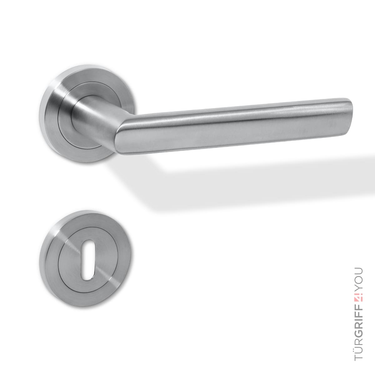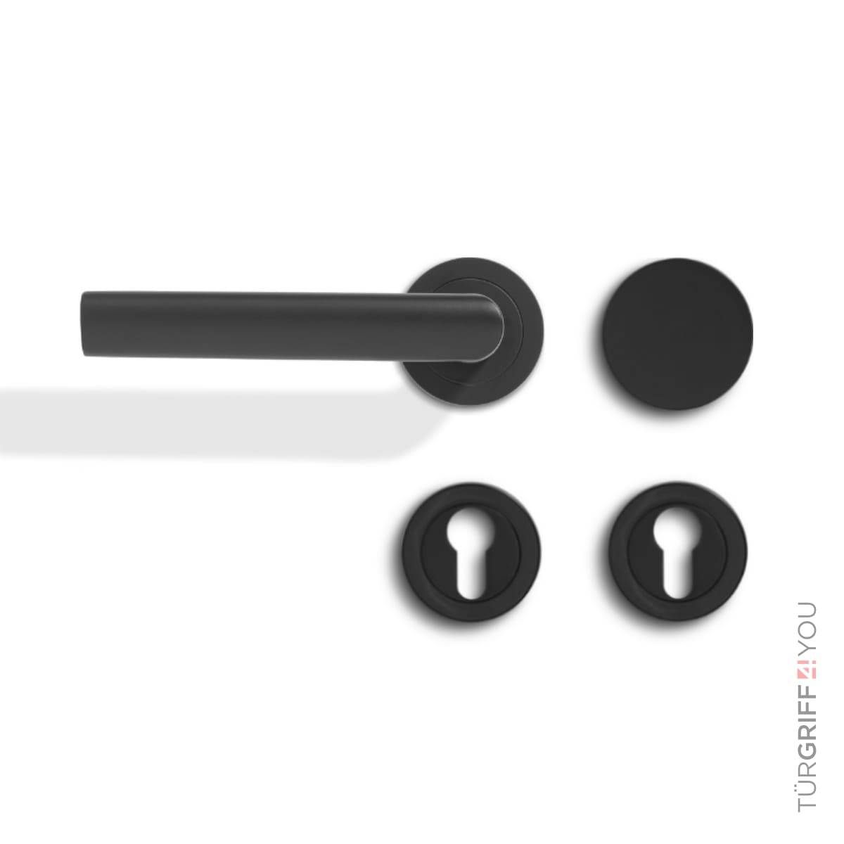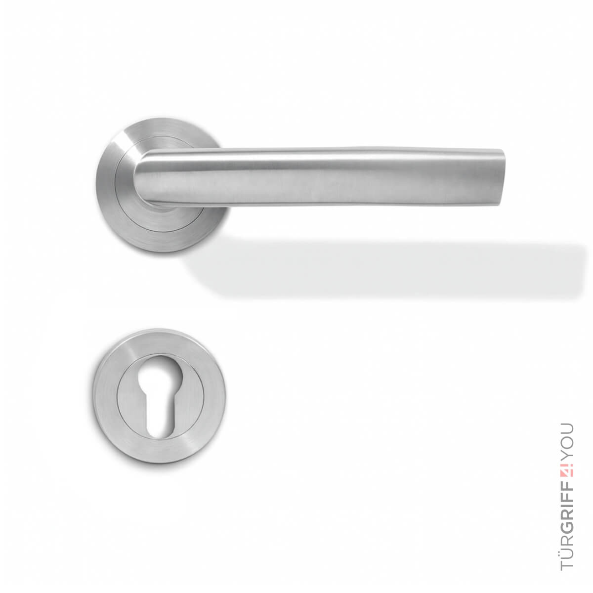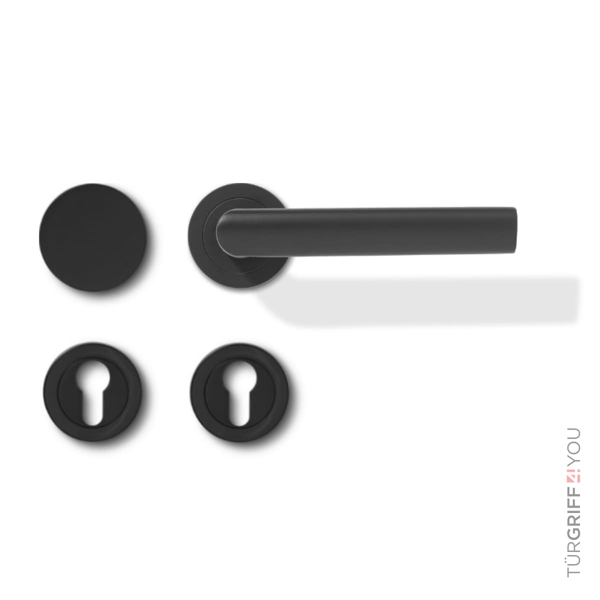 Lieferumfang: 1x Zimmertürgarnitur (2 Türgriffe auf Rosette, 2 Schlossrosetten), Befestigungsmaterial