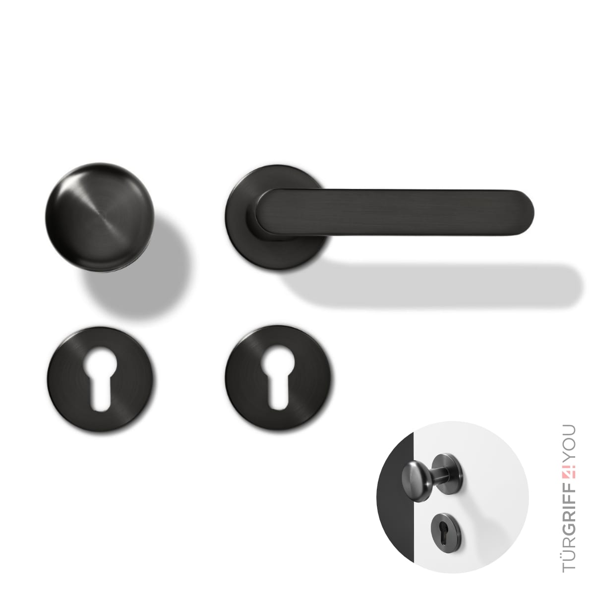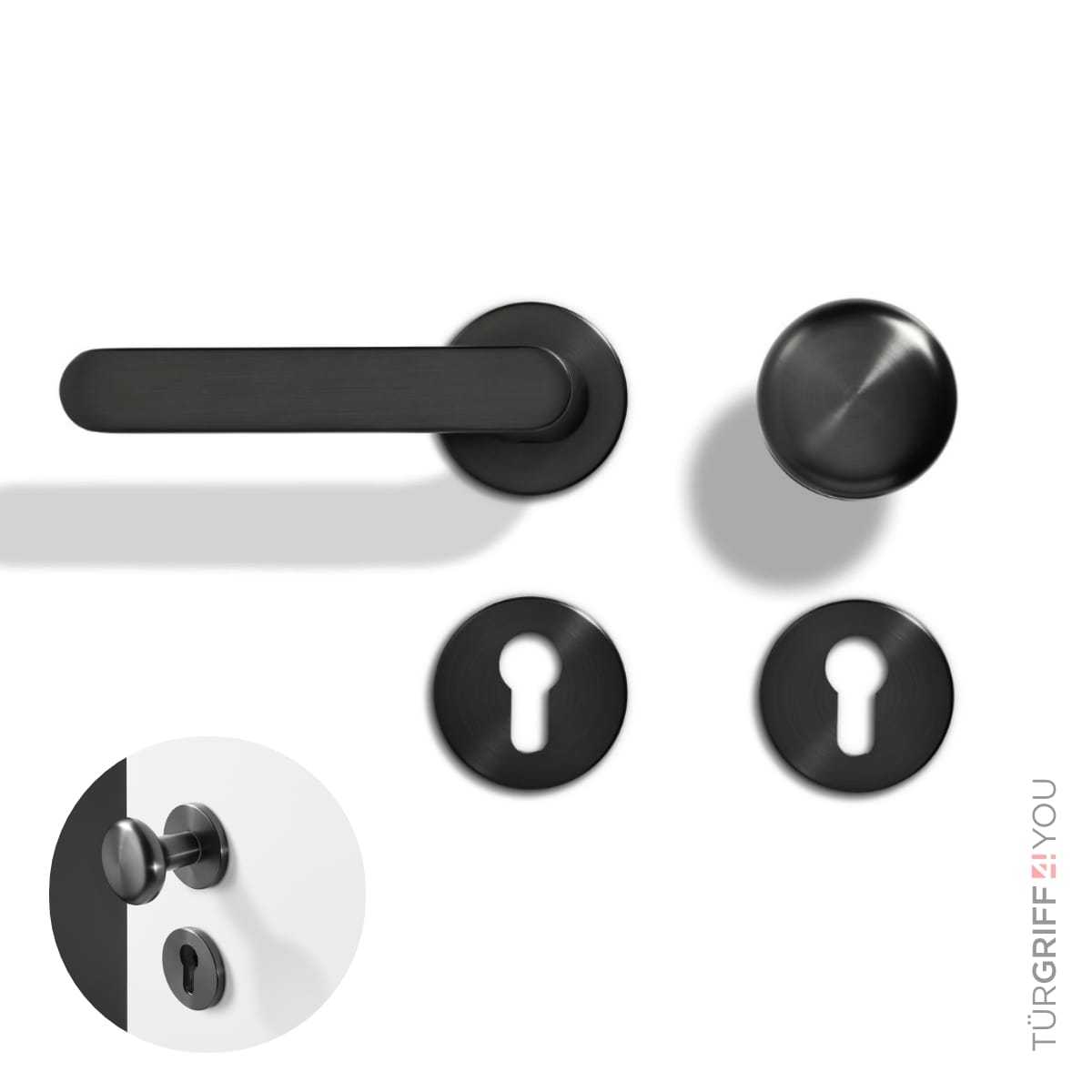Türgriff Anguli Black - Schwarzer Türdrücker mit runder Rosette