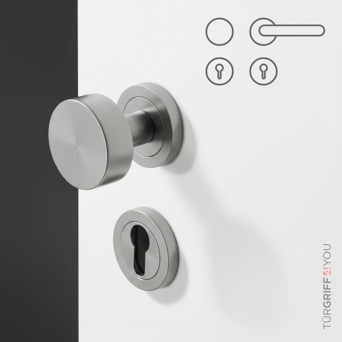 · WE (Wechselgarnitur): Türgriff nur innen, außen fester Knauf. Oft bei Haustüren im Einsatz.