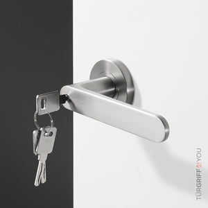 Der Türgriff Azari vereint minimalistisches Design mit durchdachter Technik. Ohne sichtbare Madenschraube wirkt er wie aus einem Guss. Die unsichtbare Schließmechanik mit einfacher Notentriegelung sorgt für Sicherheit und Komfort. Mit beidseitiger Hochhaltefeder und robustem Zinkdruckguss garantiert er Langlebigkeit und passt durch den 8 mm Vierkant in jedes Standard-Einsteckschloss.