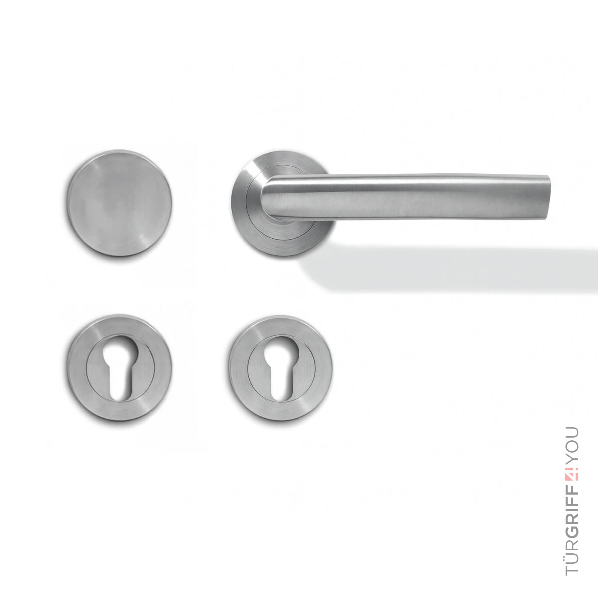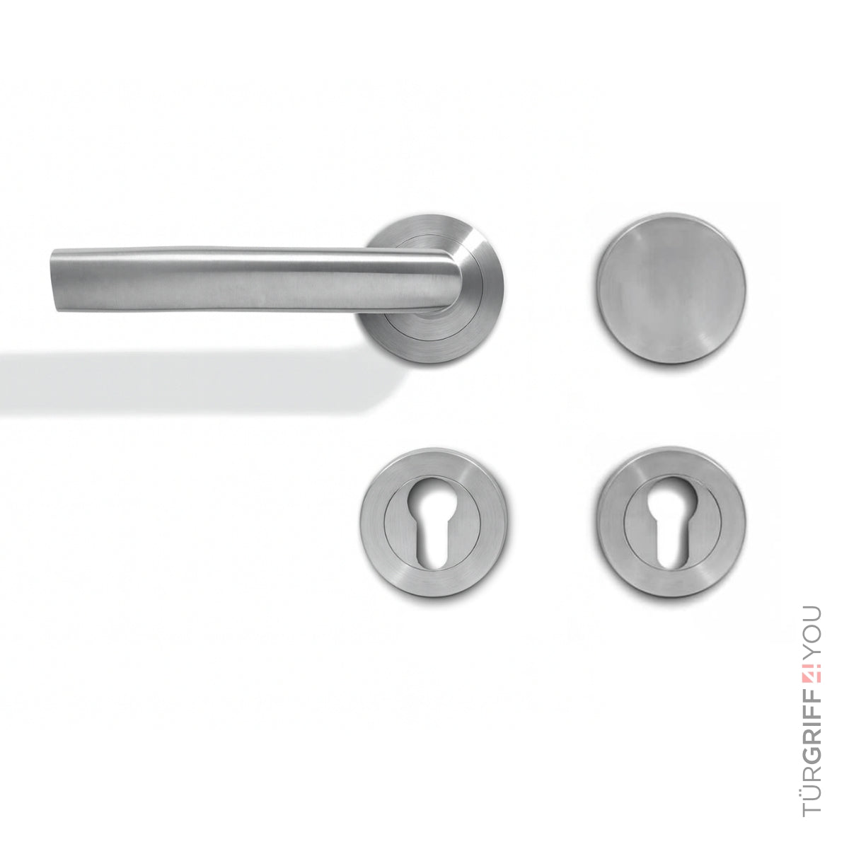 Lieferumfang: 1x Zimmertürgarnitur (2 Türgriffe auf Rosette, 2 Schlossrosetten), Befestigungsmaterial