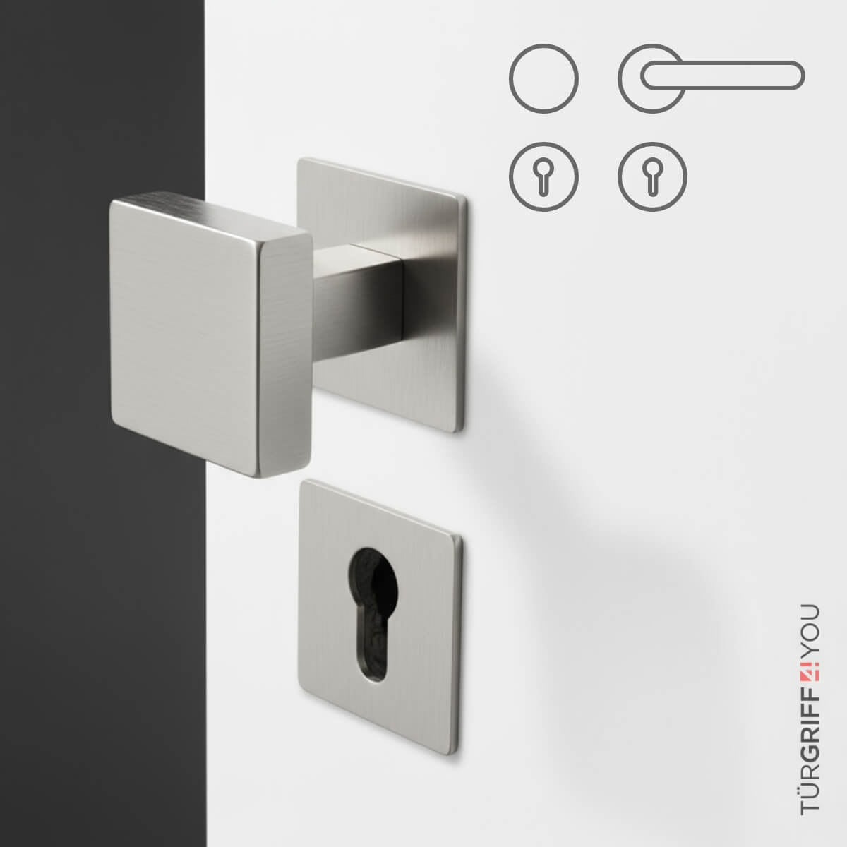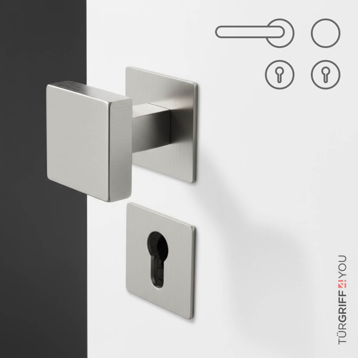 · WE (Wechselgarnitur): Türgriff nur innen, außen fester Knauf. Oft bei Haustüren im Einsatz.